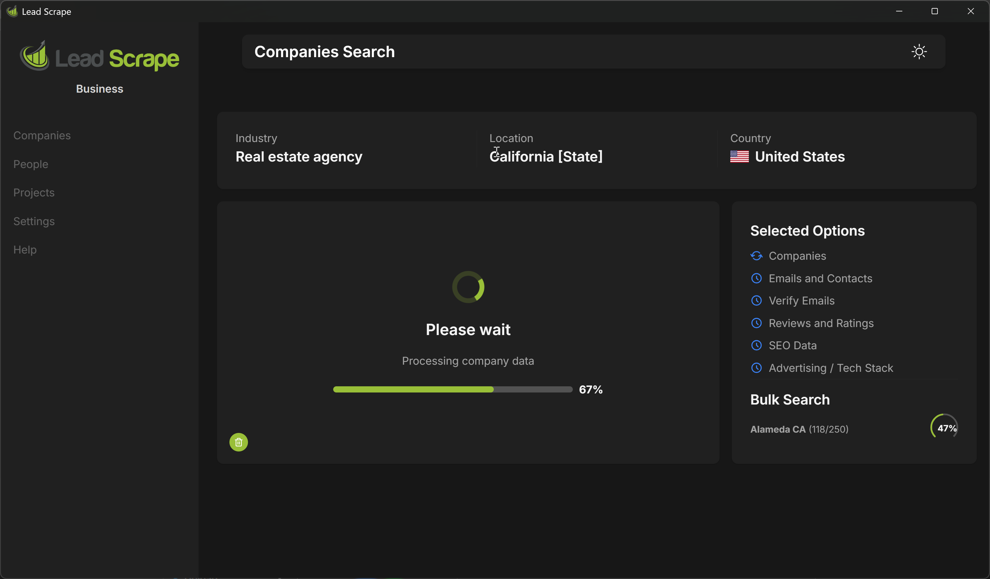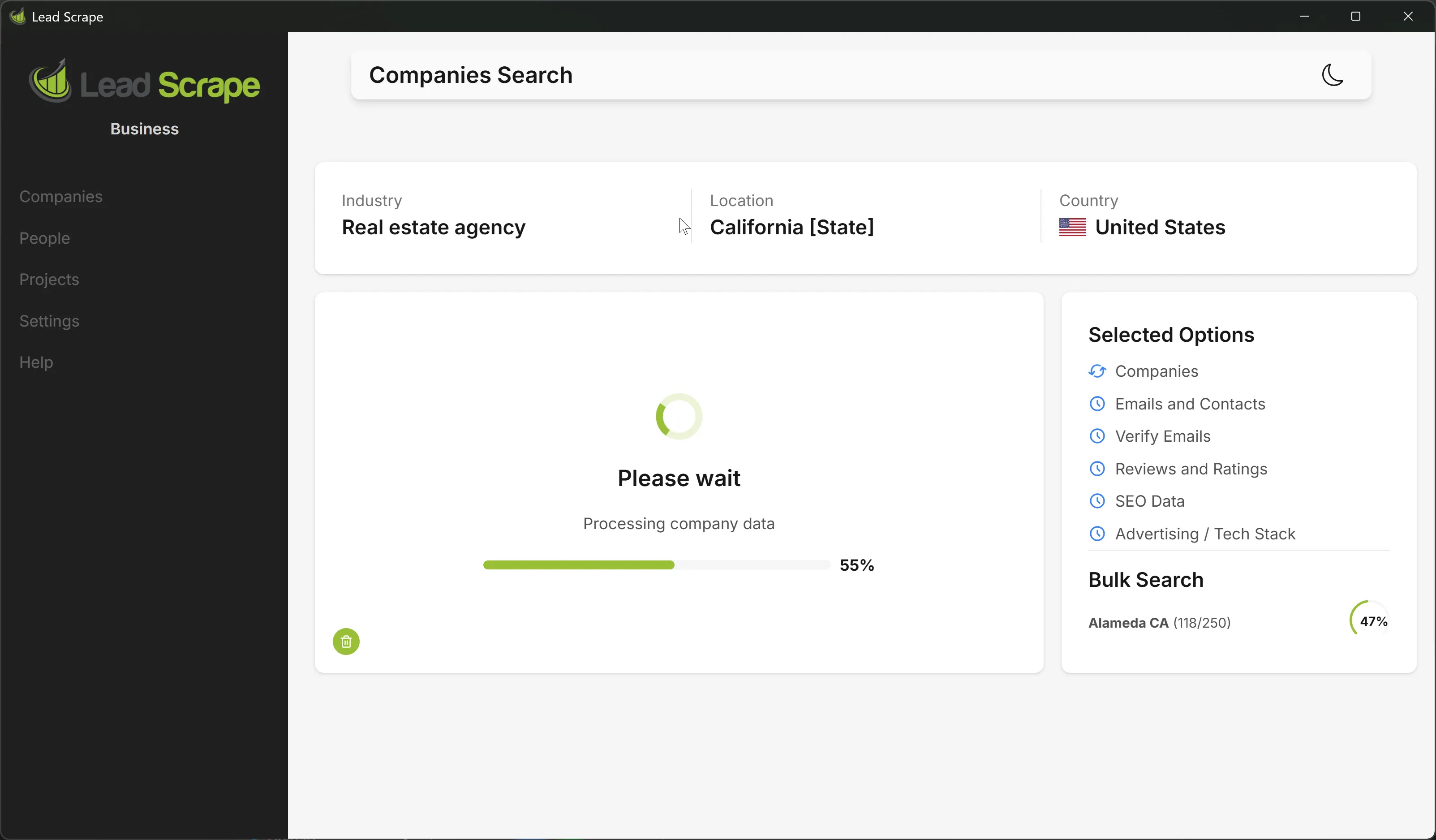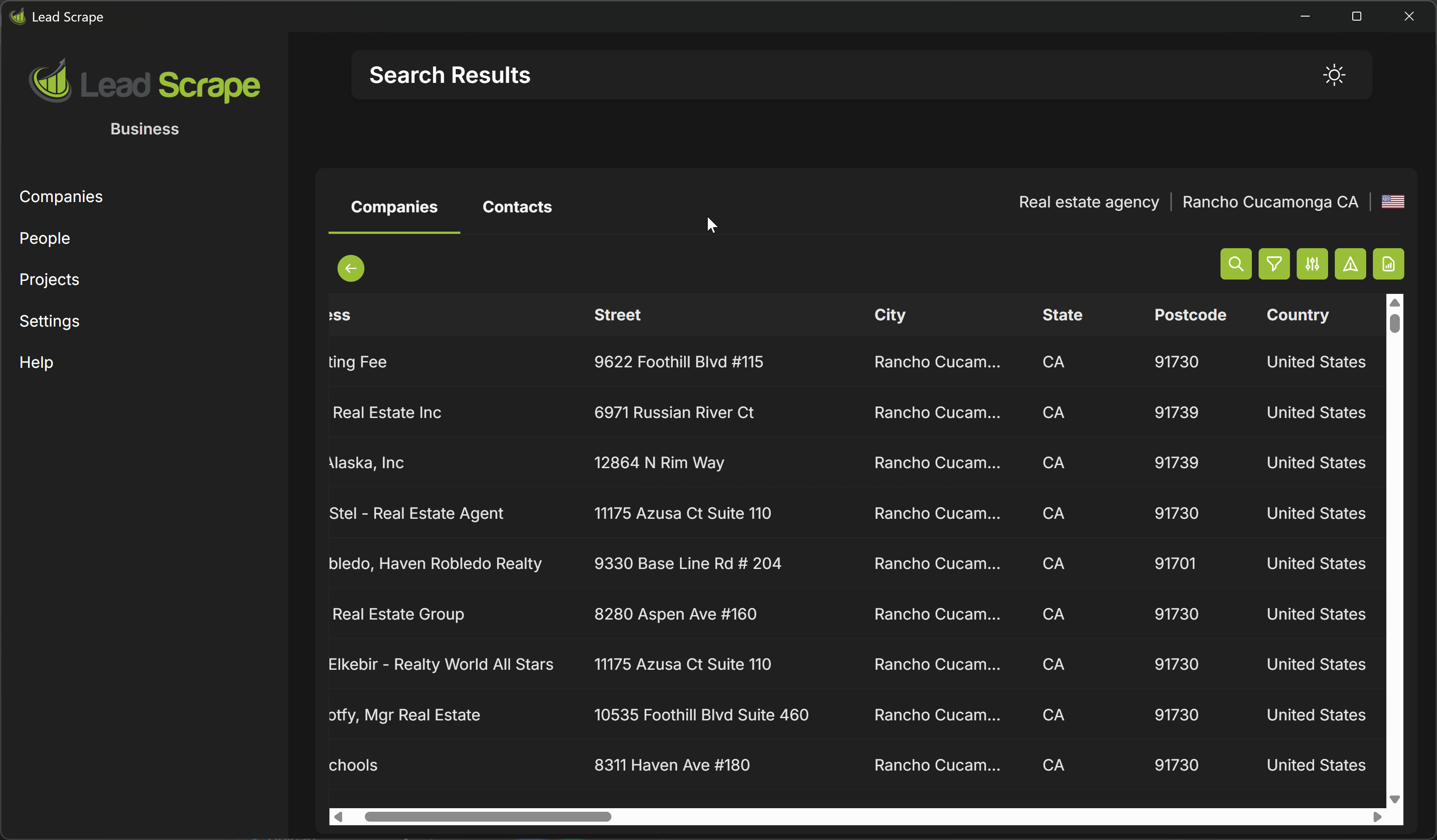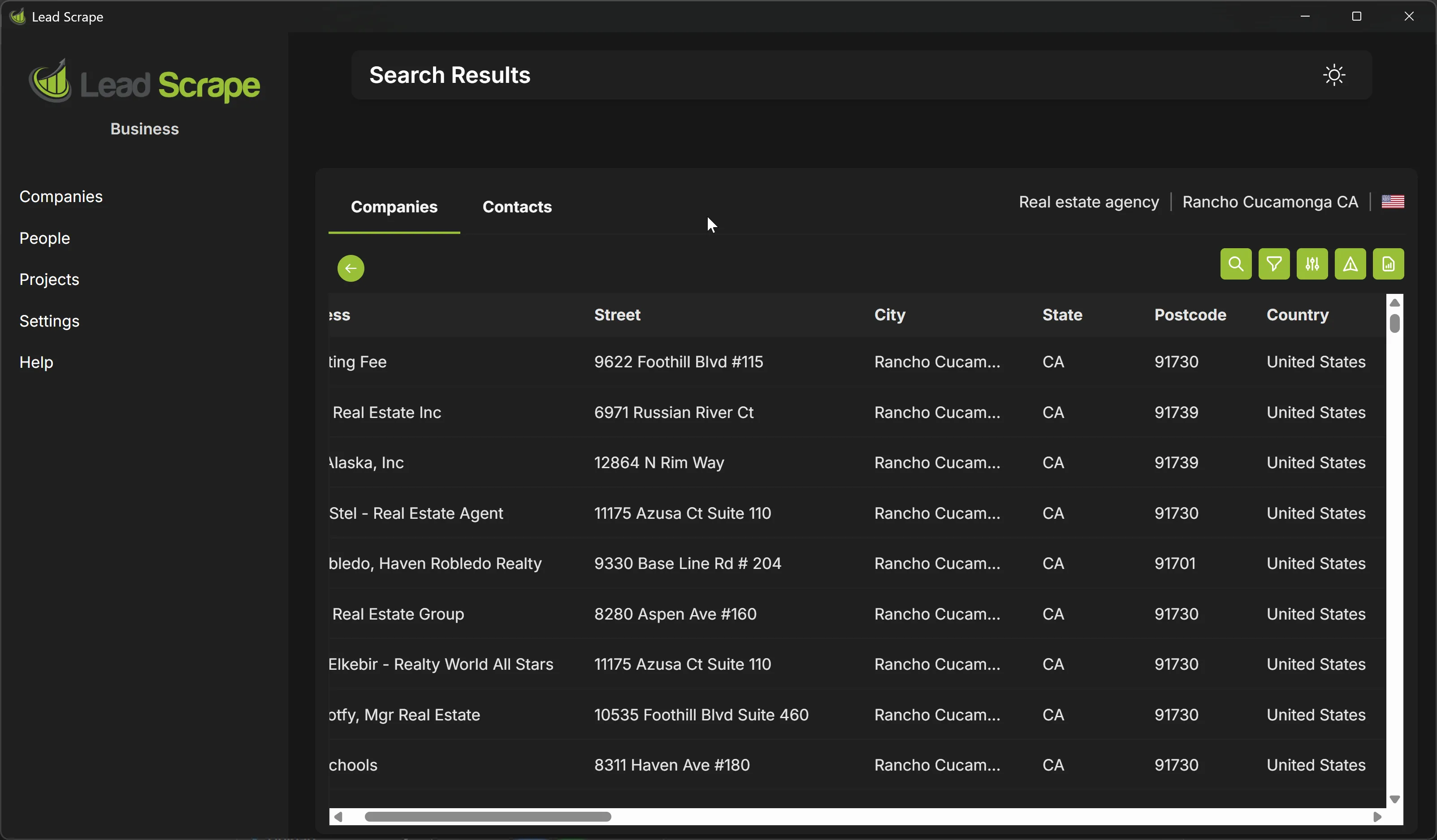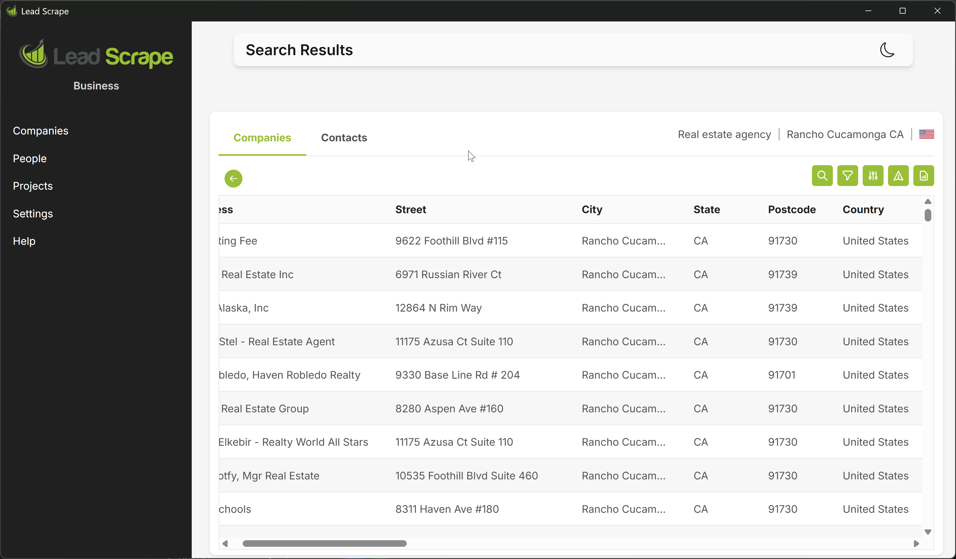 Lead Scrape saves the results in CSV and Excel format. You can then import the exported file into any database you want.